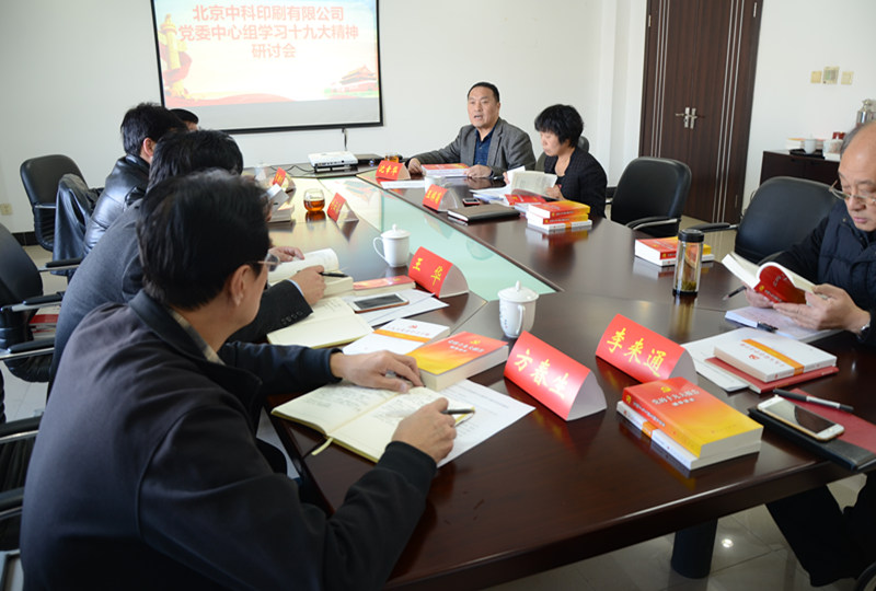 11月22日,北京中科印刷有限公司召开党委中心组学习研讨会,学习研讨十九大报告和党章,学习习近平总书记在党的十九届一 中全会上的重要讲话精神,研究部署贯彻落实工作。党委书记、董事长沈幸华主持会议,公司党委委员、纪委委员参加会议。