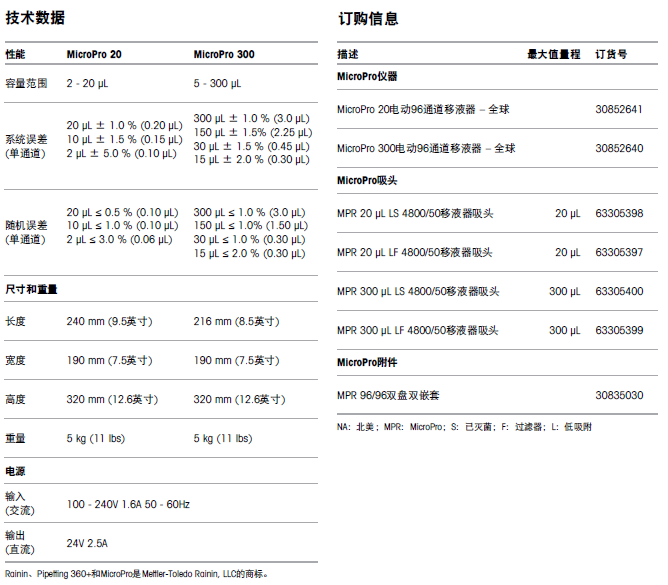 • 20 μL和300 μL的型号