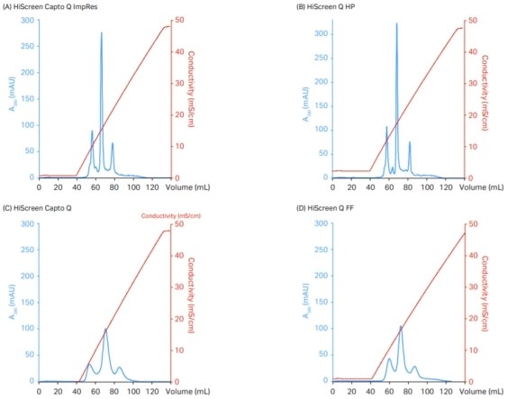 The Capto ImpRes series combines the high flow rate characteristics of the Capto series with the high resolution performance of the Sepharose HP series. As can be seen from the above figure, Capto ImpRes has higher resolution in chromatographic purification with the same retention time; While maintaining the same resolution separation effect, Capto ImpRes can be achieved faster than the Sepharose HP series. This is also an efficient and highly protective purification design concept for precious protein samples in chromatographic separation.